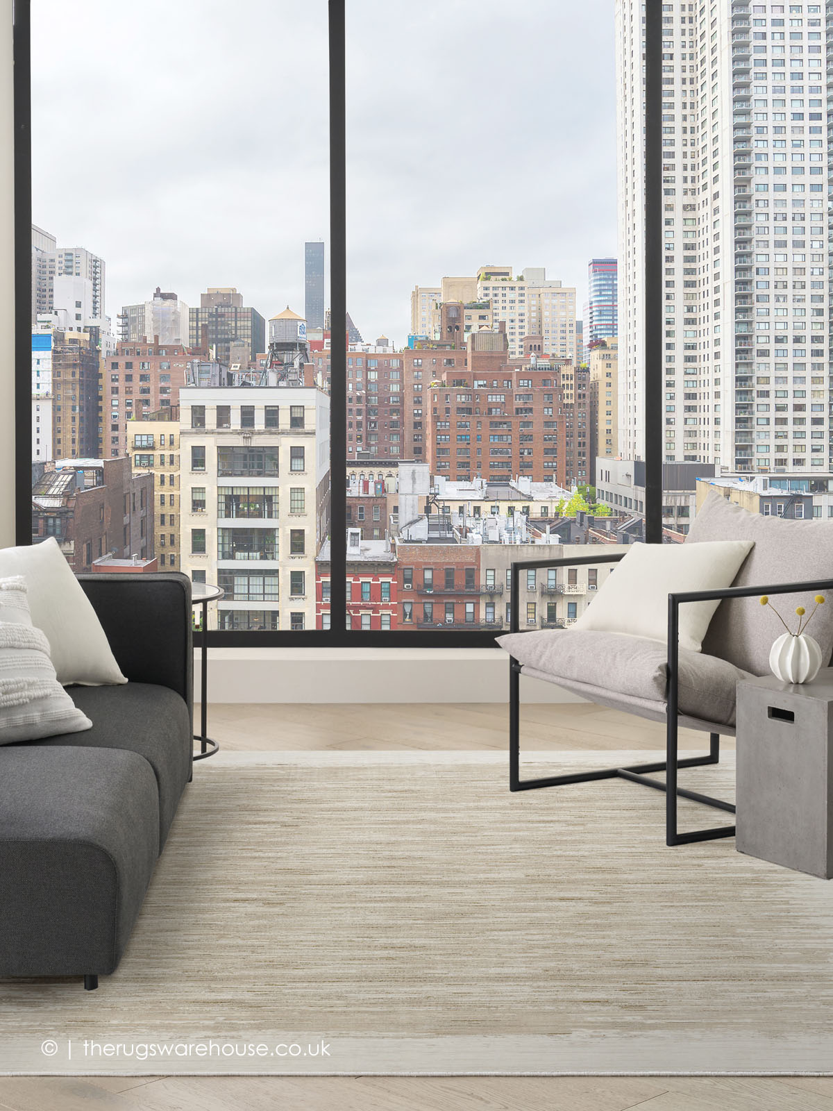 This item is part of the Grand Street Rugs collection, which is a range of elegant designer carpets by DKNY characterized by soft serene tones. The collection utilizes neutral earthly toned colours to maximum effect, it also further features carved and textured surfaces, which gives prominence to the designs. In addition, the rugs in this collection are made from super soft polyester, which feels lush to the touch.